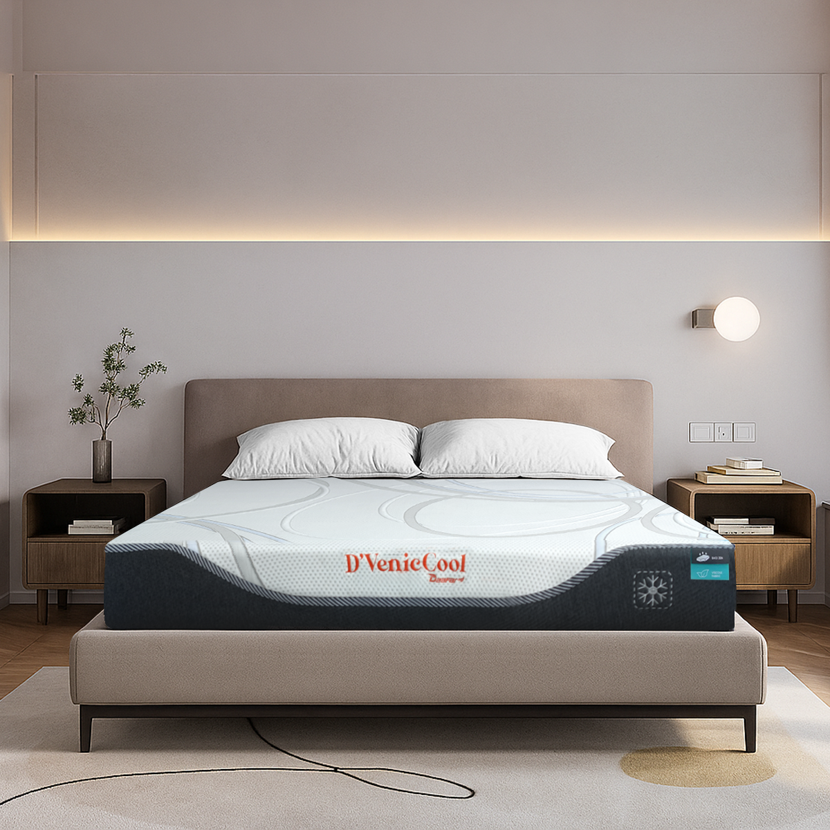 Nếu bạn cực kỳ sợ nóng, nệm Foam D’Venic Cool Gel là lựa chọn số một. Lõi nệm được tích hợp các hạt Cool Gel lạnh sâu, có khả năng hấp thụ nhiệt lượng từ cơ thể và tỏa ra cảm giác mát lạnh tức thì. Công nghệ này biến bề mặt nệm thành một tấm gương phản chiếu nhiệt độ, giữ cho bạn luôn ở trạng thái thoải mái nhất dù trong những ngày hè oi ả.